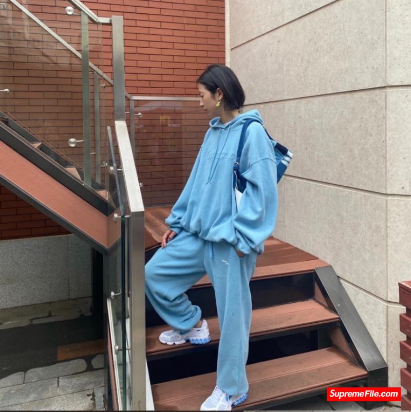 近期她上脚白蓝 Nike Air Zoom Spiridon Caged 2,同样搭配一身蓝色运动服套装和同色腋下包,满是潮流元素!
